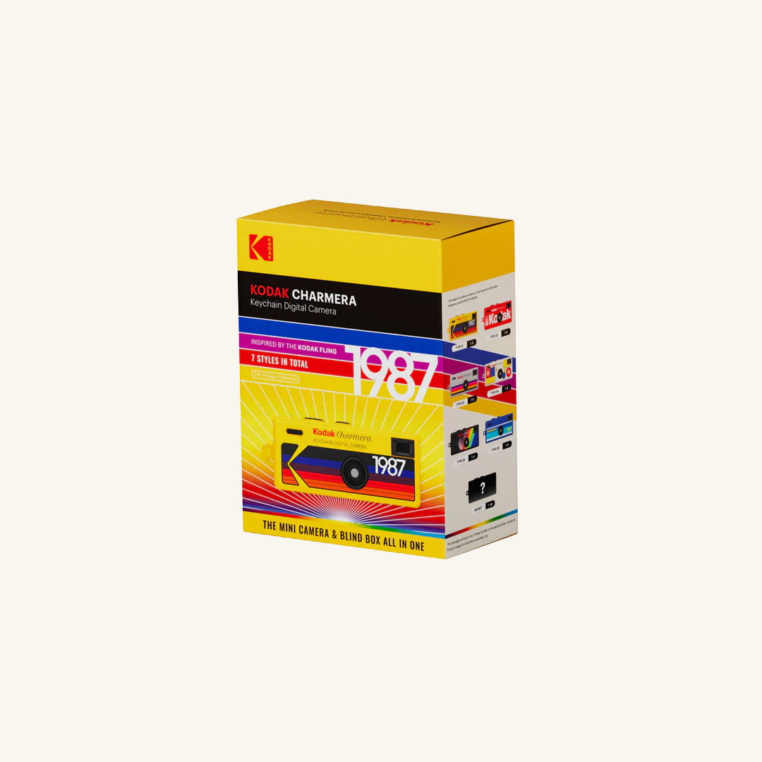 The KODAK CHARMERA is a tiny digital camera supporting both photo taking and video recording. Customised KODAK frames, vintage filters and date stamp are available in the photo mode. A total of 7 retro styles are sold in blind boxes, adding fun and collectibility for you and your friends!